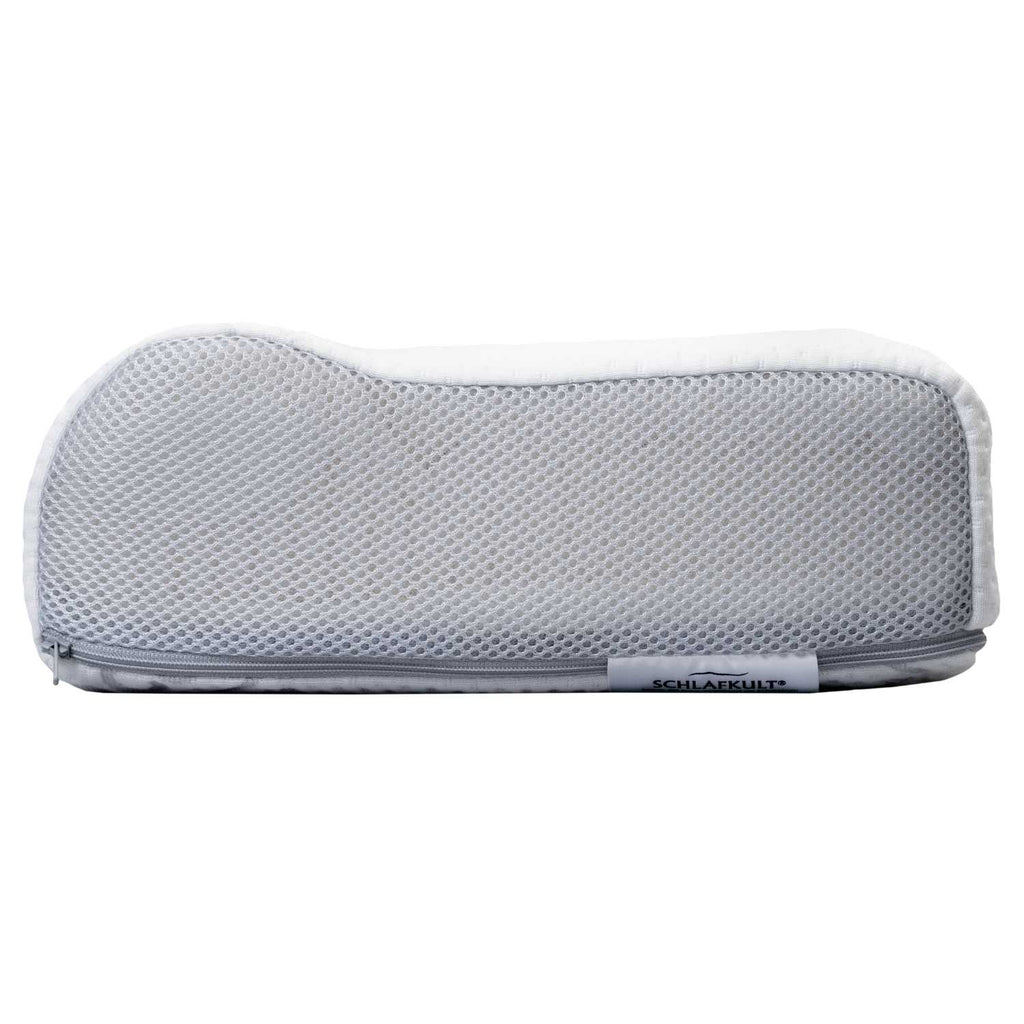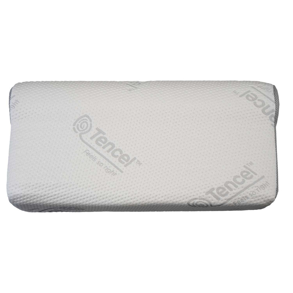 Het kussen is opgebouwd uit een Talalay Latex kern en verhogingsplating i.c.m. een visco band en Tencel hoes. Latex staat bekend om zijn veerkracht. Het wordt gemaakt van sap van een rubberboom en is daarom ik uitermate duurzaam. De visco band geeft extra ondersteuning bij de nek. De Tencel hoes biedt een natuurlijke koeling, uitstekend vochtmanagement en gaat bacteriegroei tegen.